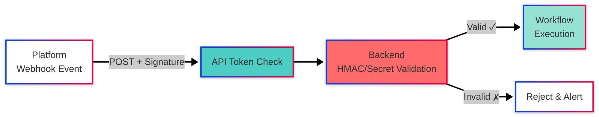 - Applies platform-specific verification automatically (HMAC, signing secrets, timestamp checks)