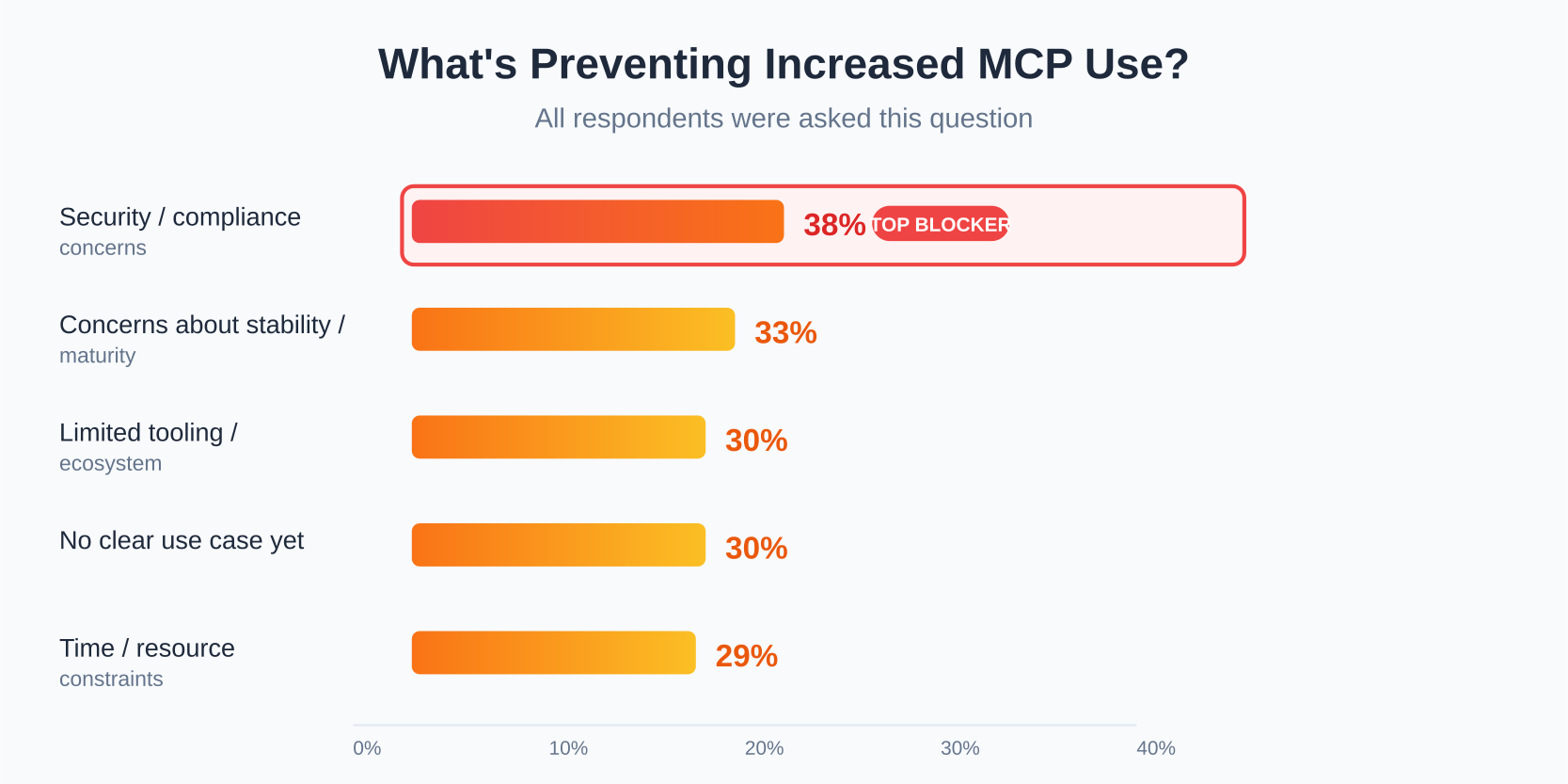 38% cite security/compliance as the primary barrier. This isn't a tooling problem or a use-case problem—it's a trust problem.